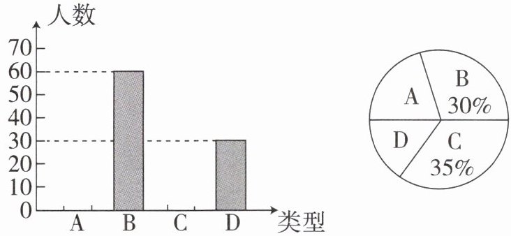 14. 每年的 4 月 23 日为“世界读书日”,阅读可以丰富知识,充实生活. 昆明某中学计划在各班设立图书角,为合理搭配各类书籍,学校团委以“我最喜欢的书籍”为主题,对全校学生进行抽样调查,收集整理喜欢的书籍类型(A. 科普;B. 文学;C. 体育;D. 其他)数据后,绘制出两幅不完整的统计图. 下列说法正确的是()