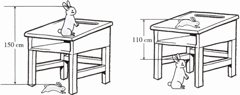 设桌子高度为$x cm$,站立兔子高度为$y cm$,趴下兔子高度为$z cm$。