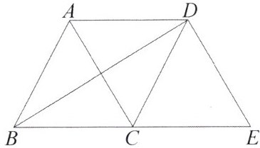 5. 如图,等边 $ \triangle A B C $ 沿射线 $ B C $ 向右平移到 $ \triangle D C E $ 的位置,连接 $ A C $,$ B D $,有下列结论:① $ A D = B C $;② $ B D $,$ A C $ 互相平分;③四边形 $ A C E D $ 是菱形. 其中正确的有(