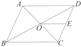 4. 如图,$ □ A B C D $ 的对角线 $ A C $,$ B D $ 相交于点 $ O $,点 $ E $ 是 $ C D $ 的中点. 若 $ A D = 4 \mathrm { cm } $,则 $ O E $ 的长为(