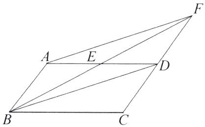 11. 如图,在平行四边形 $ABCD$ 中,点 $E$ 是边 $AD$ 的中点,$BE$ 的延长线与 $CD$ 的延长线相交于点 $F$。