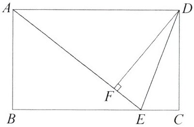 ,∴ ∠DFE = 90°。在矩形 ABCD 中,∠C = 90°,∴ ∠DFE = ∠C。在矩形 ABCD 中,AD // BC,∴ ∠ADE = ∠DEC,又 AE = AD,∴ ∠ADE = ∠AED,∴ ∠AED = ∠DEC。又 ∵ ∠DFE = ∠C = 90°,DE 是公共边,∴ △DFE ≌ △DCE (AAS),∴ DF = DC。