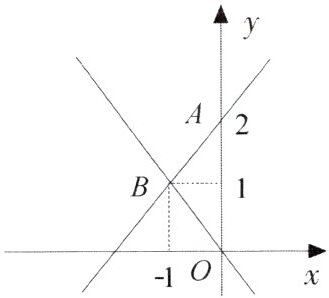 6. 如图,一次函数图象经过点$A(0, 2)$,且与正比例函数$y = - x$的图象交于点$B(- 1, 1)$,则该一次函数的表达式为(