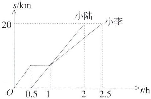 6. 小李与小陆从 $ A $ 地出发,骑自行车沿同一条路行驶到 $ B $ 地,他们离出发地的距离 $ s $(单位:km)和行驶时间 $ t $(单位:h)之间的函数关系的图象如图所示,根据图中提供的信息,有下列说法:① 他们都行驶了 20 km;②小陆全程共用了 1.5 h;③小李与小陆相遇后,小李的速度小于小陆的速度;④小李在途中停留了 0.5 h. 其中正确的说法有 (