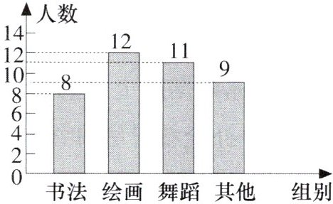 3. 学校为了解八年级学生参加课外兴趣小组活动的情况,随机调查了 40 名学生,将结果绘制成了如图所示的频数直方图,则参加绘画兴趣小组的频率是 (