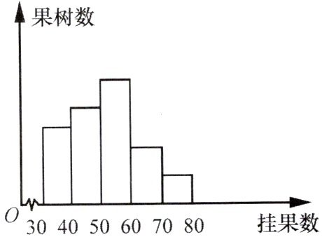 果树?(2)在抽查的果树中,挂果数在 $ 40 \sim 60 $ 之间的树有
