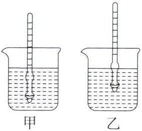 )A. 甲中液体密度比乙中液体密度小