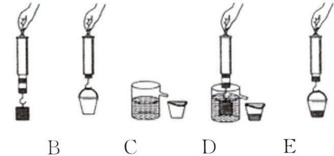 D. 把挂在弹簧测力计下的铁块浸没在水中,让溢出的水全部流入小桶中,读出弹簧测力计示数 F;