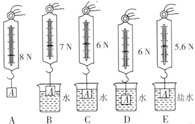 的关系;根据 A 与 E 两图所标的实验数据,可知物体浸没在盐水中所受的浮力为2.4