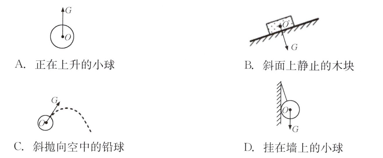 5. 如下图所示中,关于重力的示意图,正确的一项是 (