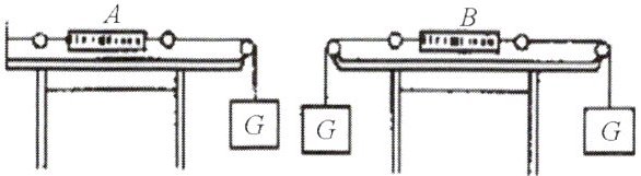 7. 如图所示,弹簧测力计和细线的重力及一切摩擦不计,物重 $ G = 1N $,则弹簧测力计 $ A $ 和 $ B $ 的示数分别为 (