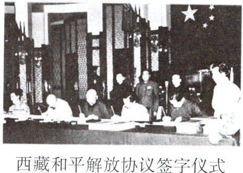 (1)右图所示反映的是西藏和平解放协议签字的场景。该协议签字是在