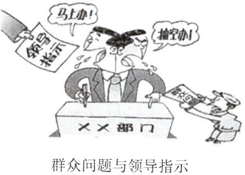 11. 右边漫画《群众问题与领导指示》中的这位工作人员(