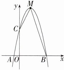 7.学科和差法特色求面积 「2024安徽淮南月考」如图,抛物线与x轴交于A,B两点,其中A点坐标为$(-1,0),M(2,9)$为抛物线的顶点.