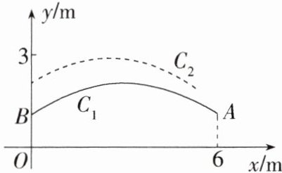如图,在平面直角坐标系中,一个单位长度代表1m长.嘉嘉在点$A(6,1)$处将沙包(看成点)抛出,其运动路线为抛物线$C_{1}:y= a(x-3)^{2}+2$的一部分,淇淇恰在点$B(0,c)$处接住,然后跳起将沙包回传,其运动路线为抛物线$C_{2}:y= -\frac {1}{8}x^{2}+\frac {n}{8}x+c+1$的一部分.