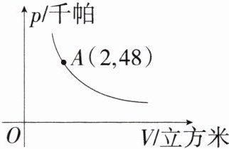 (3)当$p=120$(千帕)时,$V=\frac {96}{120}=0.8$(立方米).答:当气球内的气压为120千帕时,气体体积为0.8立方米.