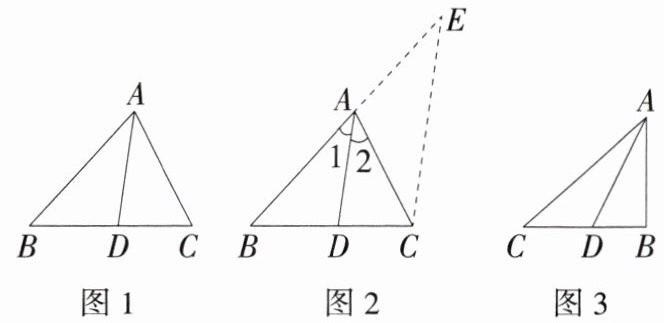 (1)证明:如题图2,过C作CE//DA,交BA的延长线于点E.则$\frac{BD}{CD}=\frac{BA}{EA}$,∠2=∠ACE,∠1=∠E.