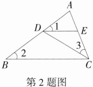 2.「2024安徽淮北月考」如图,$△ABC$中,点D在AB边上,点E在AC边上,且$∠1= ∠2= ∠3$,则与$△ADE$相似的三角形的个数为 ( )
