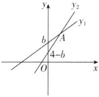 (2)因为a+b=4,所以a=4-b,所以$y_1=(4-b)x+b$,$y_2=bx+(4-b)$.因为0<a<4,所以0<4-b<4,所以0<b<4.如图,因为x<1时,$y_1>y_2$恒成立,所以由图象得4-b<b,所以b>2.综上,2<b<4.
