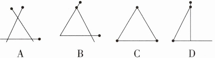 C [解析]因为三角形是由不在同一条直线上的三条线段首尾依次相接所组成的封闭图形,所以C选项符合题意。