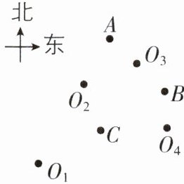(1)如图,连接AC交BM于点D,则点D即为所求,所以快递驿站D的位置在B地的北偏西60°方向线与A,C两点连线的交点处,故答案为在B地的北偏西60°方向线与A,C两点连线的交点处。
