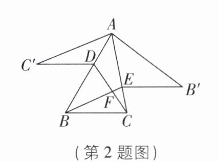 2 [较难]如图所示,锐角三角形 ABC 中,D,E 分别是 AB,AC 边上的点,△ADC≌△ADC',△AEB≌△AEB',且 C'D//EB'//BC,BE,CD 交于点 F,若∠BAC = 40°,则∠BFC 的度数是 ( )