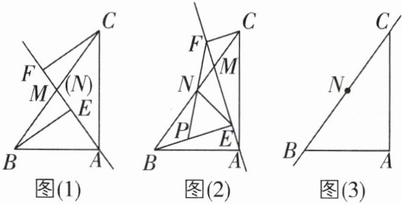 (2)如图(2),当点$N不与点M$重合时,延长$FN交BE于点P$,则$△NFE的面积S_{1}与△PFE的面积S_{2}$的关系为____,请说明理由.