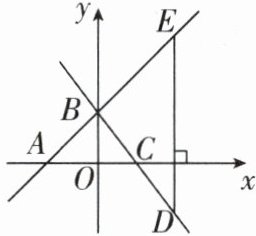 (2)添加辅助线,延长DE交AB的延长线于点F,利用全等三角形的判定与性质得出结果。设DE交x轴于点F,如图所示。