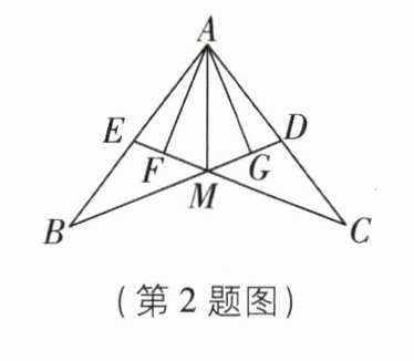 2 [2025 安徽六安金安区校级期中,较难]如图,$AB= AC$,点$D$,$E分别在AC$,$AB$上,且$AE= AD$,连接$EC$,$BD$,$EC交BD于点M$,连接$AM$,过点$A分别作AF⊥CE$,$AG⊥BD$,垂足分别为$F$,$G$,则下列结论错误的是 ( )