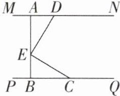 5 [2025 陕西西安期末]如图,MN//PQ,AB⊥PQ,点 A,D 和 B,C 分别在直线 MN 与 PQ 上,点 E 在 AB 上,AD + BC = 7,AD = EB,DE = EC,则 AB = ______.