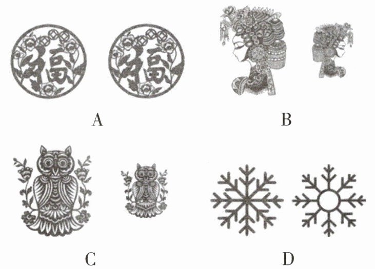 A 【解析】观察各选项,只有选项A中的两个图案能够完全重合,选项B、C、D中的两个图案不能够完全重合. 故选A.
