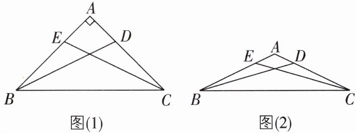 (2)如图(2),若∠BAC = α(90° < α < 180°),则线段 AE 与线段 AD 相等吗? 如果相等,请给出证明;如果不相等,请说明理由.
