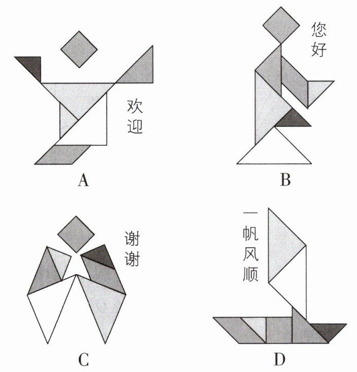 1 新考向 传统文化 [2025 安徽芜湖期中]如图,七巧板起源于我国古代,是一种传统益智玩具.下列由七巧板拼成的表情图中,是轴对称图形的为(不考虑颜色)