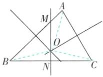 4 [2025 安徽宣城质检]如图,已知直线 MN 为△ABC 的边 BC 的垂直平分线,若 AB,AC 两边的垂直平分线相交于点 O,当顶点 A 的位置移动时,点 O 在( )