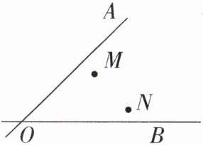 6 如图,某地有两所大学和两条相交叉的公路(点 M,N 表示大学,直线 AO,BO 表示公路)。现计划在∠AOB 的内部修建一座仓库 D,希望仓库到两所大学的距离相等,到两条公路的距离也相等。你能确定仓库 D 应该建在什么位置吗?在所给的图形中画出你的设计方案。(要求保留作图痕迹)