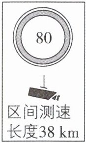 (2)由区间测速牌知,区间测速长度为38 km,则汽车以70 km/h的速度行驶的路程$s_{2}=s-s_{1}=38\ \text{km}-17\ \text{km}=21\ \text{km}$,由$v=\frac{s}{t}$得行驶的时间$t_{2}=\frac{s_{2}}{v_{2}}=\frac{21\ \text{km}}{70\ \text{km/h}}=0.3\ \text{h}$;汽车在该区间测速路段行驶的总时间$t=t_{1}+t_{2}=0.2\ \text{h}+0.3\ \text{h}=0.5\ \text{h}$,则汽车在该路段的平均速度$v'=\frac{s}{t}=\frac{38\ \text{km}}{0.5\ \text{h}}=76\ \text{km/h}$,由题图可知该区间限定速度为80 km/h,所以该车的平均速度没有超速。