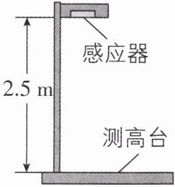 3 [2023安徽中考,中]如图所示为一种身高测量仪,其顶部的感应器竖直向下发射超声波信号,经下方物体反射后返回,被感应器接收。某同学站上测高台,感应器记录到信号从发射到接收所经历的时间为$5×10⁻^3s。$已知感应器距测高台的高度为2.5m,空气中的声速取340m/s,则该同学的身高为 (