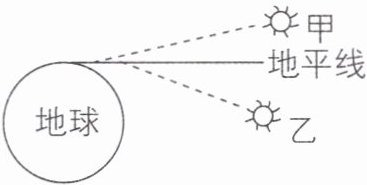 诗句“大漠孤烟直,长河落日圆”给我们展现了一幅美丽的画卷,其实诗人观察到的落日并非太阳的实际位置(如图所示),而是太阳光经过不均匀的大气层发生了