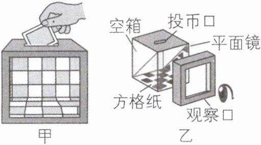 4 [2025 安徽黄山期中]在新年晚会上,小明向同学们表演了一个魔箱魔术:小明将只有一面开口的魔箱面向同学们,把纸币从顶部的投币口放入魔箱中,如图甲所示,纸币竟然凭空消失了。魔箱的结构如图乙所示。下列说法正确的是(