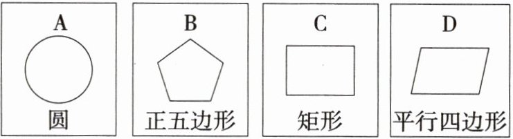 圆(A)是中心对称图形,正五边形(B)不是中心对称图形,矩形(C)是中心对称图形,平行四边形(D)是中心对称图形,