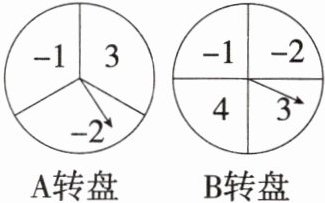 5. 如图,有 A、B 两个大小均匀的转盘,其中 A 转盘被均分成 3 份,B 转盘被均分成 4 份,并在每一份内标上数. 小明和小红同时各转动其中一个转盘,转盘停止后(当指针指向边界线时视为无效,重转),若将 A 转盘指针指向的数作为一次函数 $y= k x+b$ 中的 $k$ 的值,将 B 转盘指针指向的数作为一次函数 $y= k x+b$ 中的 $b$ 的值.