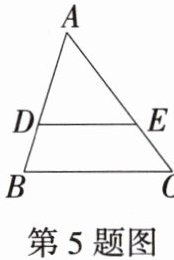 5.「2025 辽宁沈阳铁西期末」如图,在 $ \triangle A B C $ 中,点 $ D $,$ E $ 分别在 $ A B $,$ A C $ 边上,且 $ D E // B C $. 若 $ A B = 6 $,$ A D = 4 $,则 $ \frac { A E } { E C } $ 的值为(