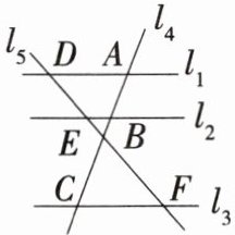 4. 「2025 河南南阳内乡期中」如图,直线 $ l _ { 1 } $,$ l _ { 2 } $,$ l _ { 3 } $ 分别交直线 $ l _ { 4 } $ 于点 $ A $、$ B $、$ C $,交直线 $ l _ { 5 } $ 于点 $ D $、$ E $、$ F $,且 $ l _ { 1 } // l _ { 2 } // l _ { 3 } $.