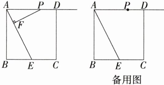 13. 新课标 推理能力 如图,正方形$ABCD$的边长为4,$E是BC$边的中点,点$P在射线AD$上,过$P作PF \perp AE于F$。