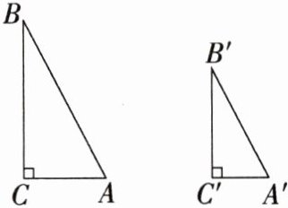 的两个直角三角形相似。”(3)如图,在$Rt\triangle ABC和Rt\triangle A'B'C'$中,$∠C = ∠C' = 90^{\circ}$,$\frac{AB}{A'B'} = \frac{AC}{A'C'}$。求证:$Rt\triangle ABC \backsim Rt\triangle A'B'C'$。