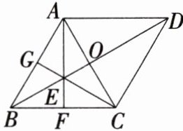 6.「2024 四川德阳中考,」如图,在菱形$ABCD$中,$∠ABC = 60^{\circ}$,对角线$AC与BD相交于点O$,点$F为BC$的中点,连接$AF与BD相交于点E$,连接$CE并延长交AB于点G$。