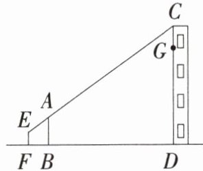 (2)小明站在原来的位置,小亮通过移动“标杆”AB,用同样的方法测得楼CD上点G的高度GD= 11.5米,那么相对于第一次测量,“标杆”AB应该向大楼方向移动多少米?