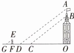 1.「2025安徽亳州利辛期中」小明和小华利用阳光下的影子来测量一建筑物顶部旗杆的高.如图所示,在某一时刻,他们在阳光下,分别测得该建筑物OB的影长OC为16米,OA的影长OD为20米,小明的影长FG为2.4米,其中O、C、D、F、G五点在同一直线上,A、B、O三点在同一直线上,且AO⊥OD,EF⊥FG.已知小明的身高EF为1.8米,求旗杆的高AB.