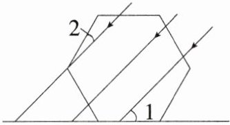 7.「2023山东枣庄中考,」如图,太阳光线平行照射在放置于地面的正六边形上,若∠1= 44°,则∠2的度数为 ( )