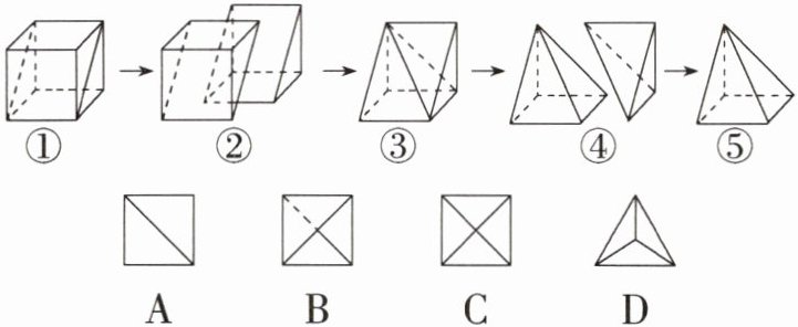 15.「2023山东烟台中考,」如图,对正方体进行两次切割,得到如图⑤所示的几何体,则图⑤中的几何体的俯视图为( )